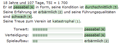 Wichtige Spielerwerte werden optisch hervorgehoben