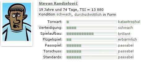 Beide Spieler machen bei durchschnittlicher Form und offensiver Ausrichtung im zentralen Mittelfeld etwa gleich viele Sternchen und stehen beim Skill "Spielaufbau" genau gleich. Stevan Randjelović bringt aber deutlich weniger für das Mittelfeld (durch die geringere Kondition), dafür bringt er mehr für den Angriff durch das höhere Passspiel. Diese beiden Spieler sehen also nach Sternchen gleich aus, wirken aber ganz verschieden auf die Ratings im Spiel!