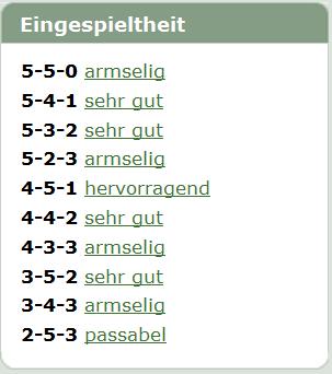 | Die Auswirkungen von PIC/MOTS sowie der Teamstimmung und des Heimvorteils auf das Mittelfeld kannst Du mit dem Mittelfeld-Rechner ausprobieren. | |||||||||||||||||||||||||||||||||||||||||||||||||||||||||||||||