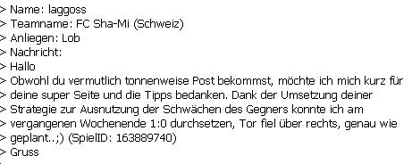 Besonders lustig wird es dann, wenn Du das Spiel trotz der Tipps der anderen Manager gewinnst und dann in dem Thread am Ende antwortest "Gut, dass ich hier alles mitgelesen habe. So konnte ich mich super auf Dich einstellen, Danke!".