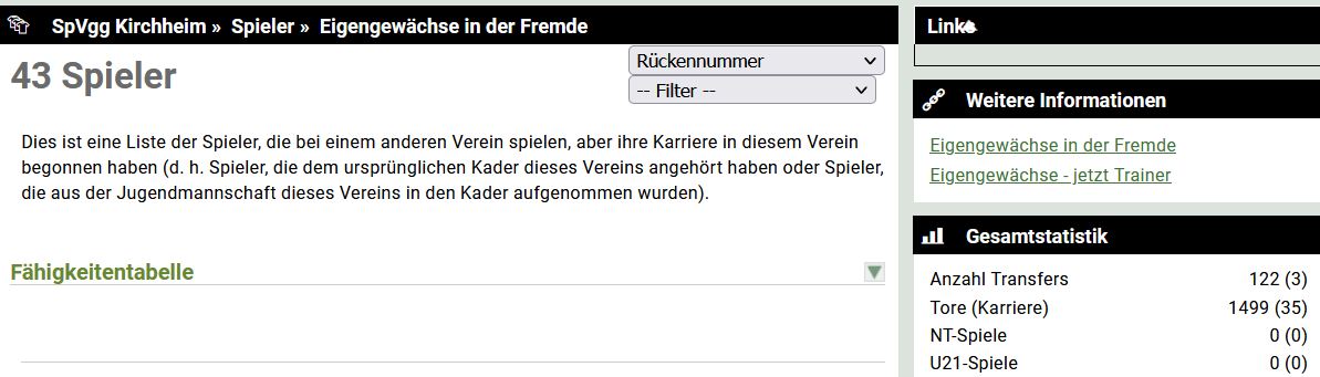 Der Erstellers dieser Webseite hatte im Januar 2024 43 Spieler, die aus der eigenen Jugend kamen und jetzt bei anderen Vereinen spielen. Bei jedem Transfer kommt wieder ein wenig Geld in die meistens leeren Kassen :-)