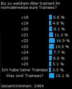 22 / 23 Jahre ist für die meisten die Schallgrenze - so denn sie überhaupt Spieler trainieren ;-)