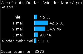 "nie" ist nicht so sinnvoll, das letzte Pflichtspiel der Saison sollte immer mit "Spiel des Jahres" gespielt werden!